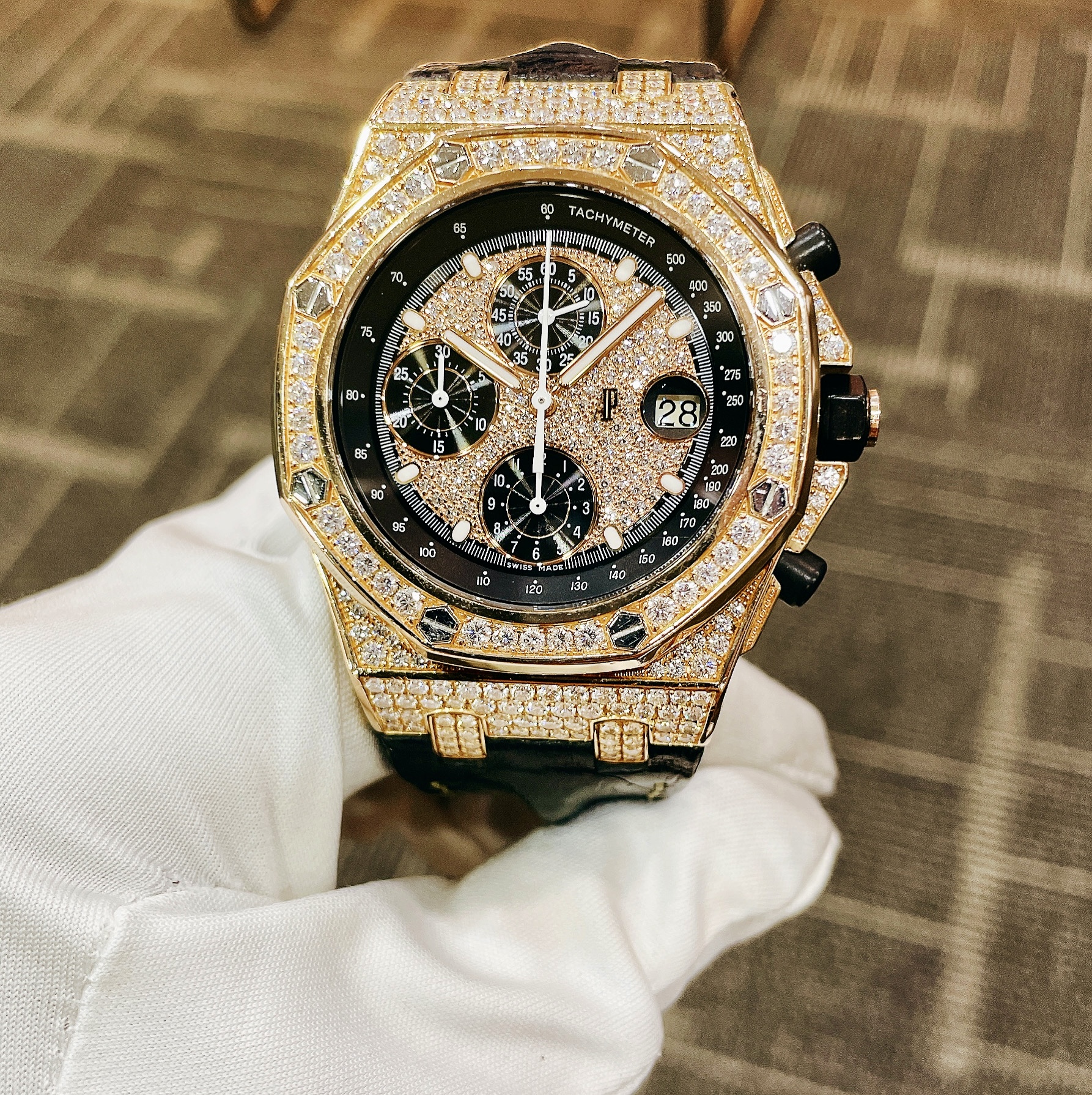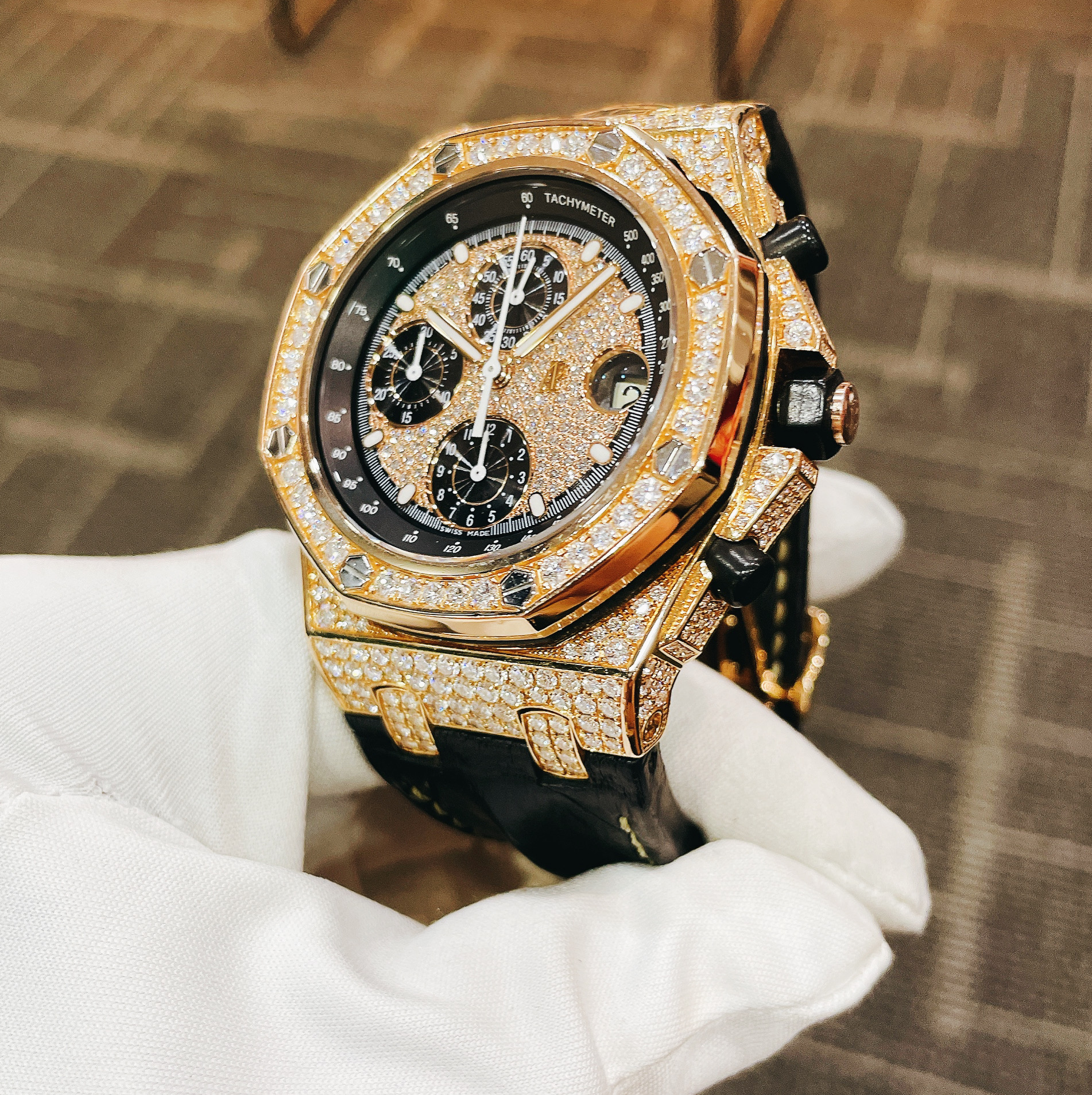 / AP Royal Oak Offshore Rose Gold Ref.26067OR Full Diamond-Paved Chronograph 42mm